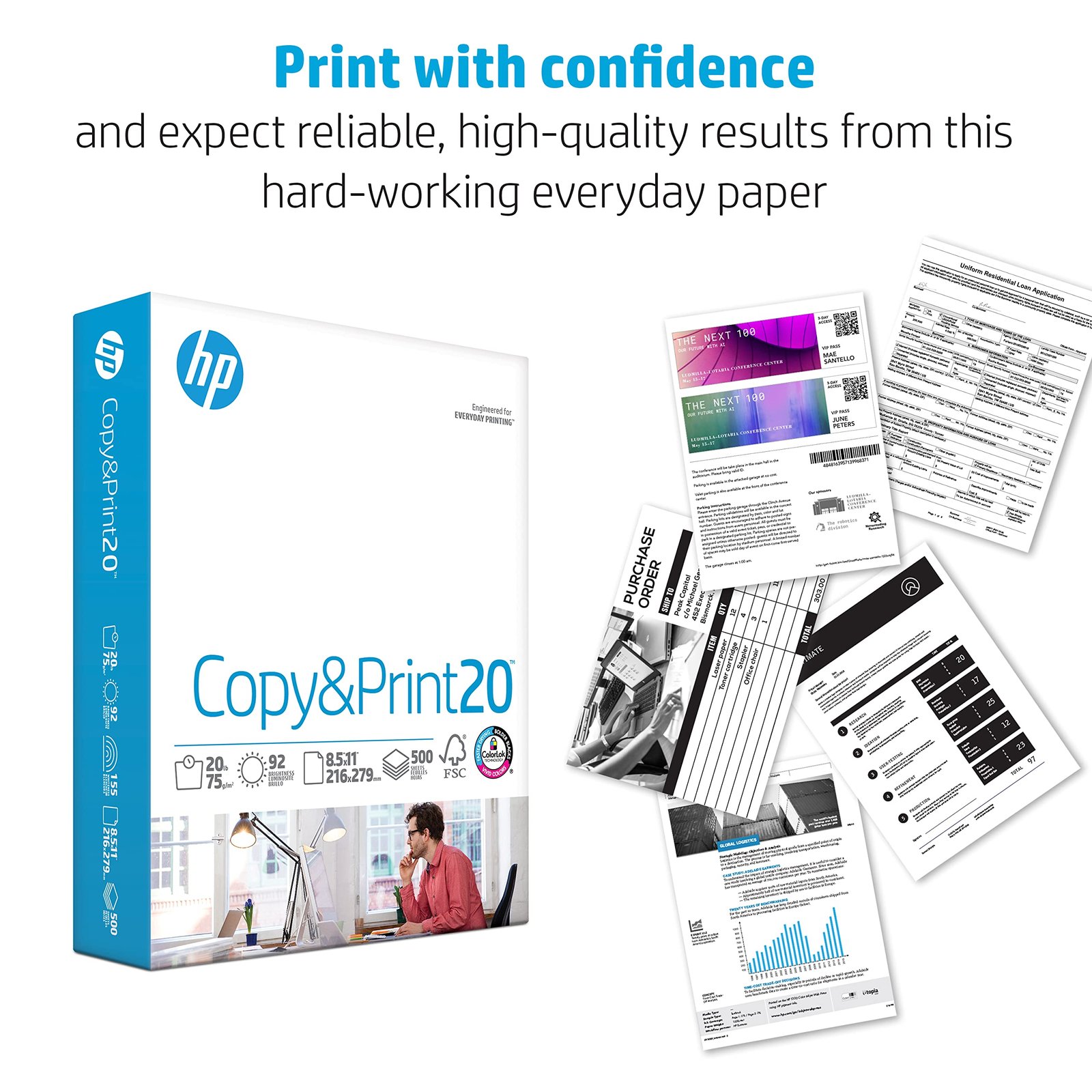 HP Printer Paper | 8.5 x 11 Paper | Copy &Print 20 lb | 5 Ream Case – 2500 Sheets| 92 Bright Made in USA – FSC Certified| 200350C